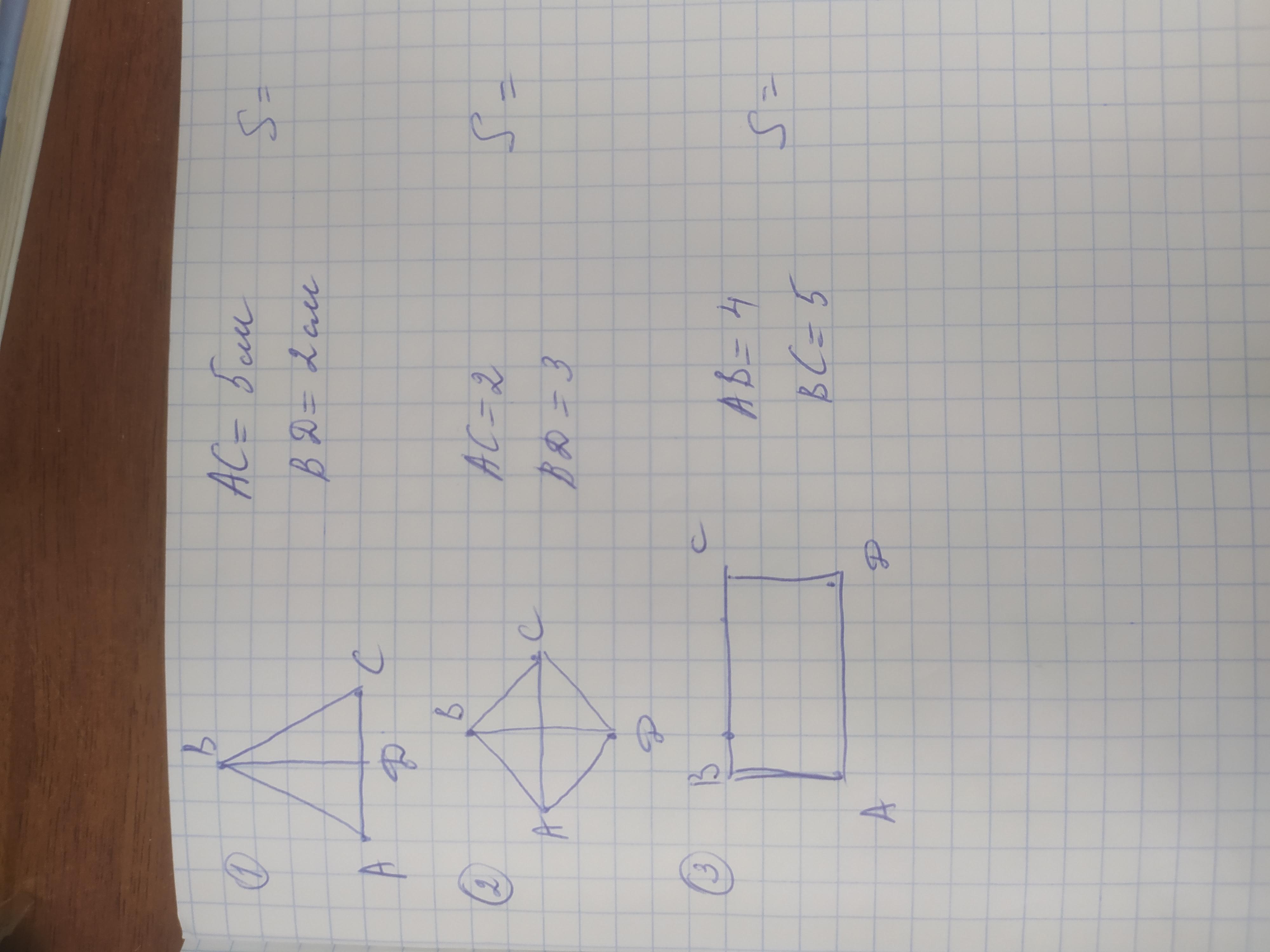 Задача 3: формула площади прямоугольника S=AB*BC=4*5=20см^2.