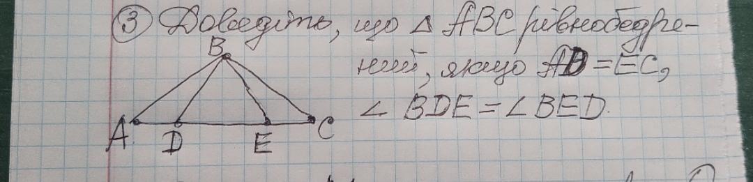 причому BD = BE . У ΔBDA і ΔBEC ∠ADB = ∠CEB , бо рівні