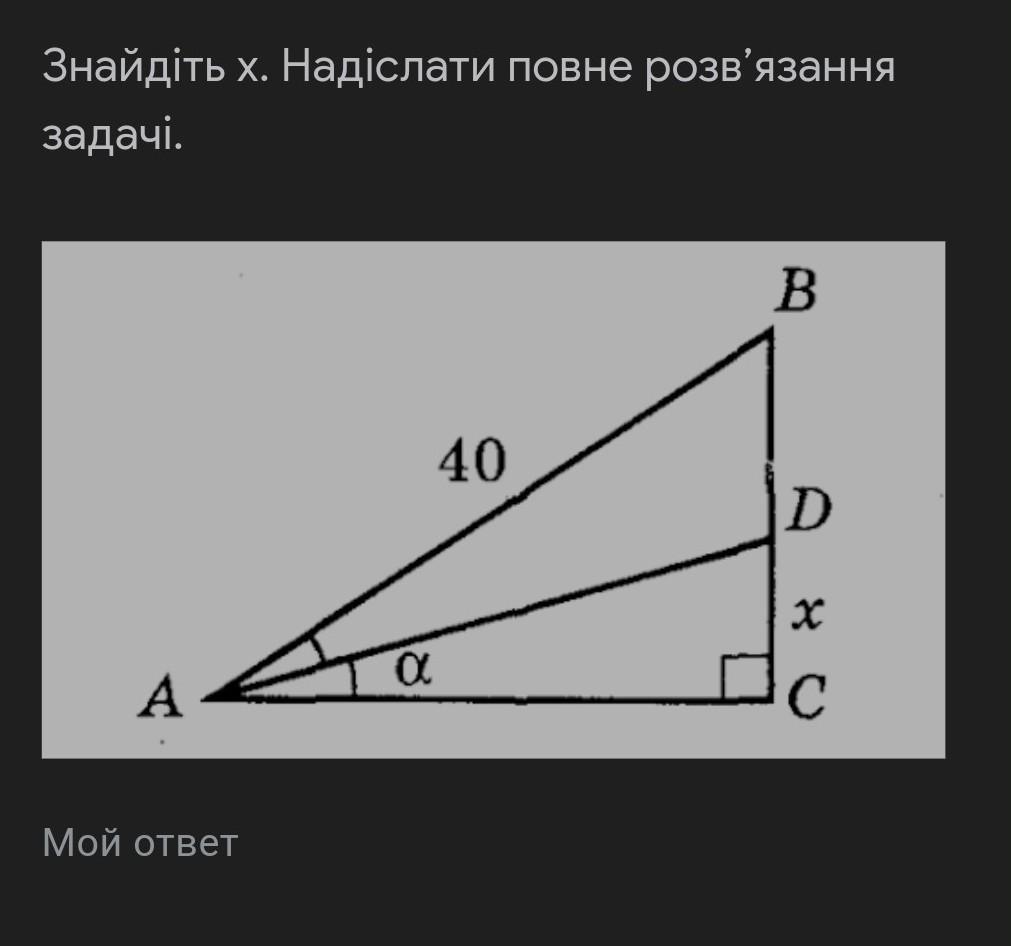 tgα=AC/DC ⇒ x=DC=AC/tgα=40*(cos²α-sin²α)*cosα/sinα=