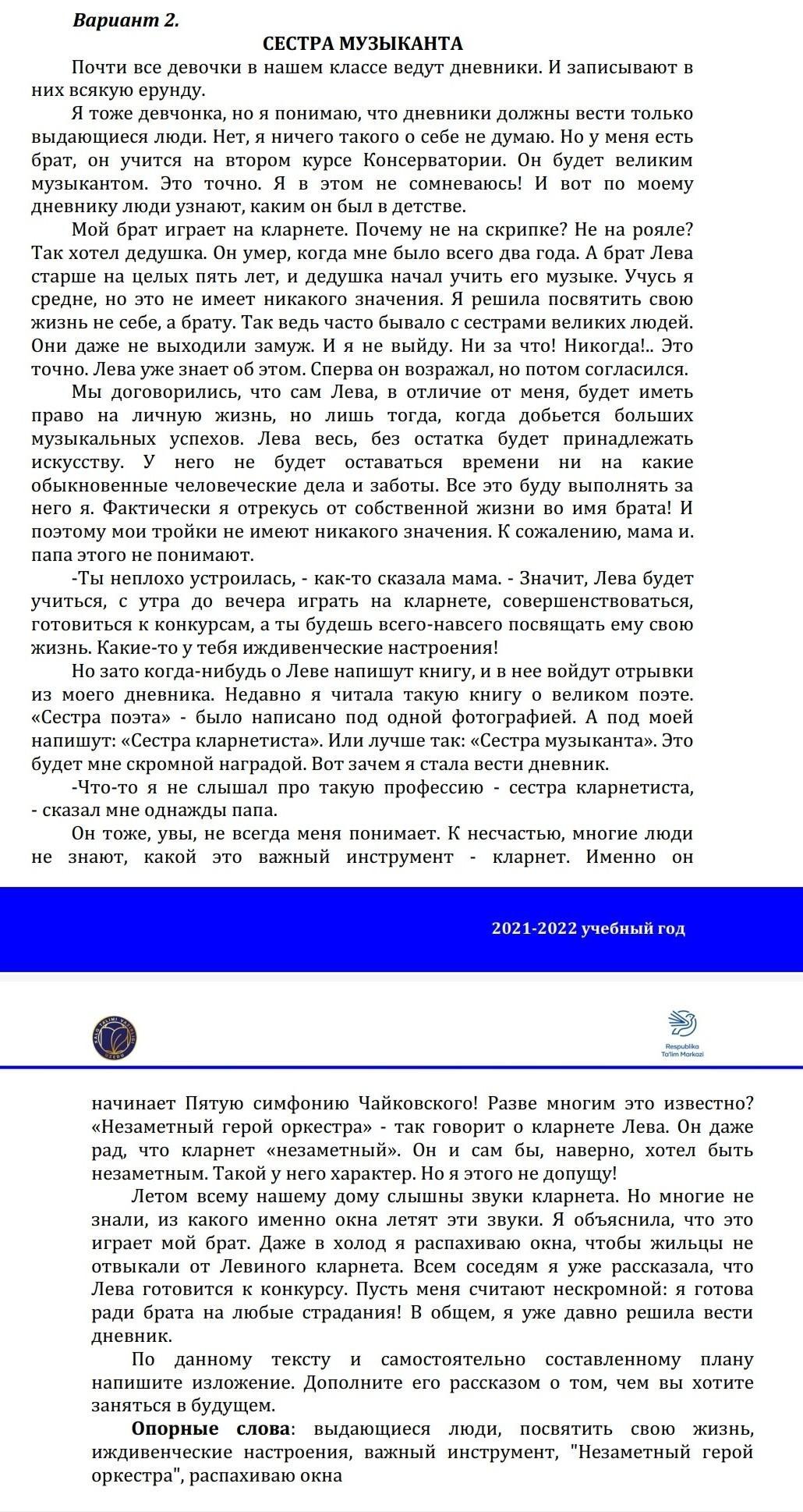 „Сестра музыканта" и продолжить, как сочинение, очень надо