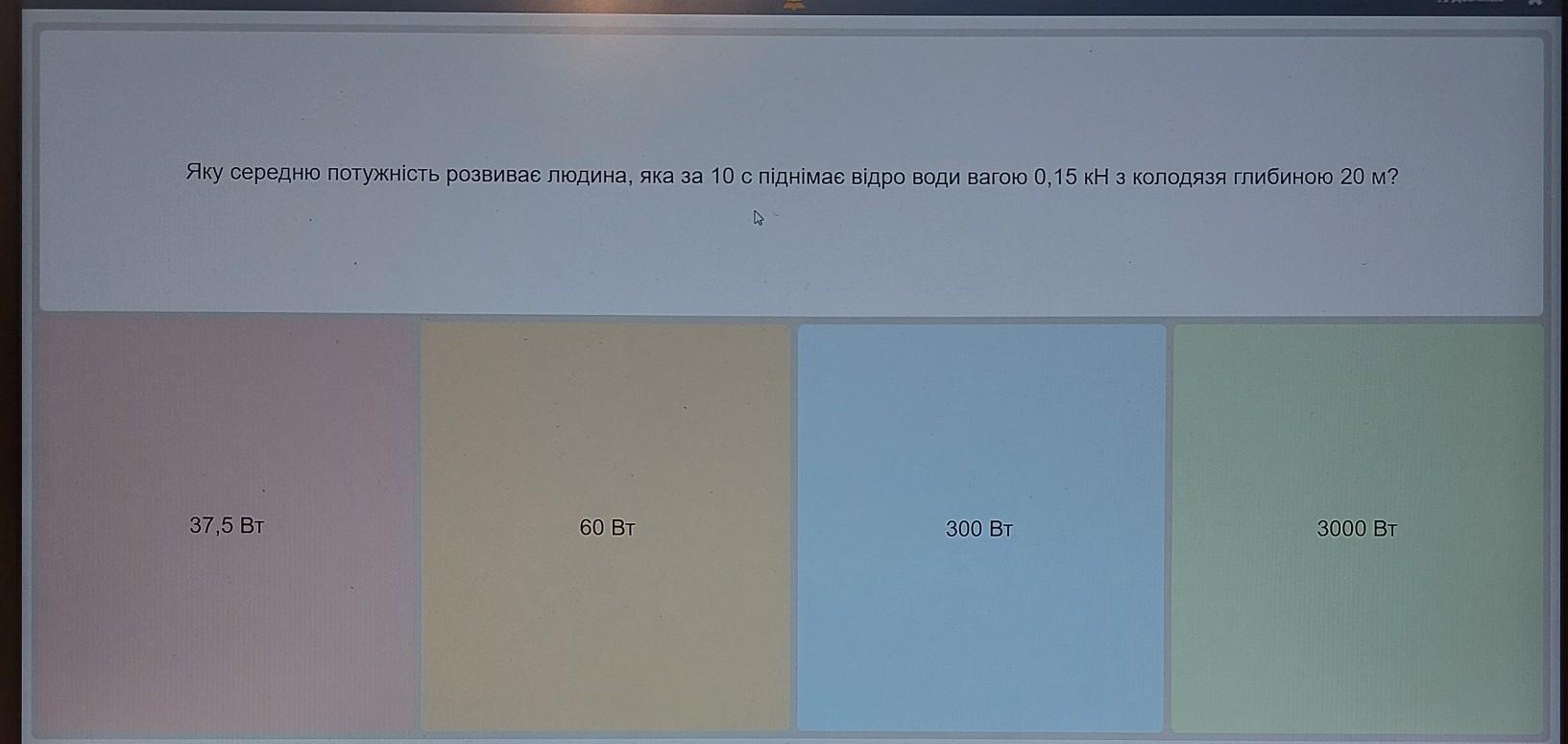 Яку середню потужність розвиває людина, яка за 10 с піднімає відро води вагою 0,15 кН з колодязя глибиною 20 м?