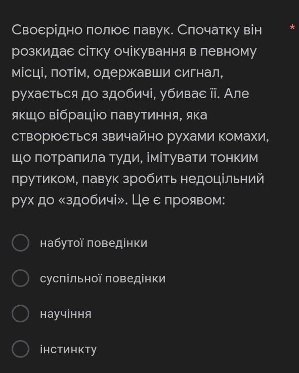 Правильна відповідь: інстинкту