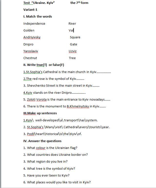 5. Yes, I was in Kyiv./No, I was not in Kyiv. (обрати, чи ви були в Києві, чи ні).