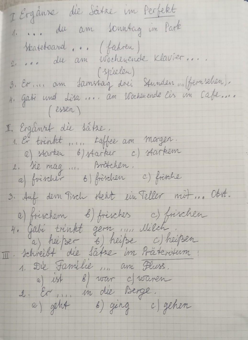 3) Er hat am Samstag drei Stunden ferngesehen.