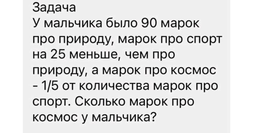 Марок про спорт равен 65. А теперь находим марок про космос. 1/5 от про спорт