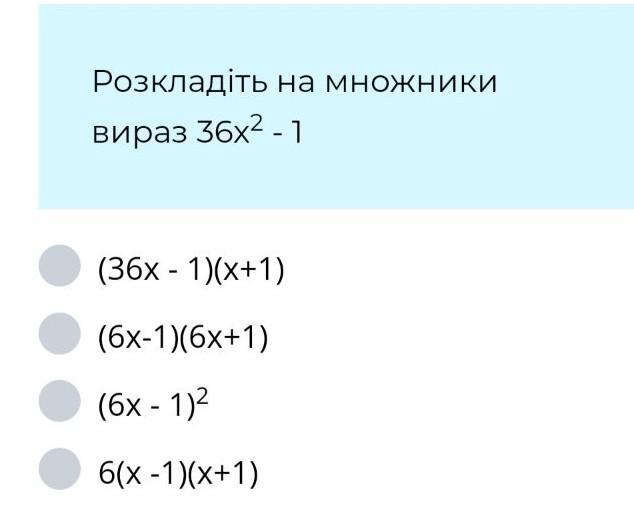 36х2-1=(6х-1)(6х+1)