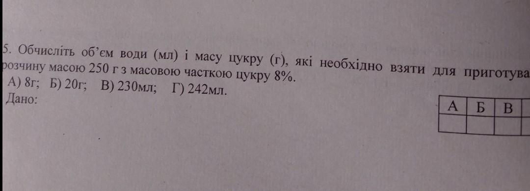 А) 8Г; Б) 20; В) 230мл; Г) 242мл.