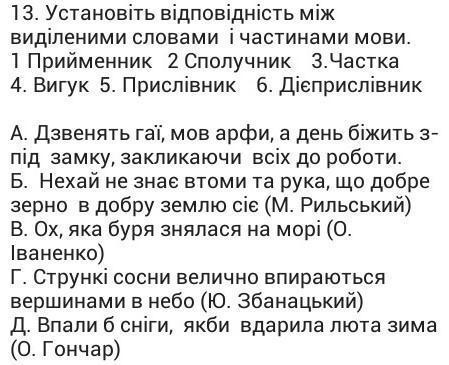 піж словами під номерами 1 2 3 4 5 6 і реченями під буквами А Б В Г Д