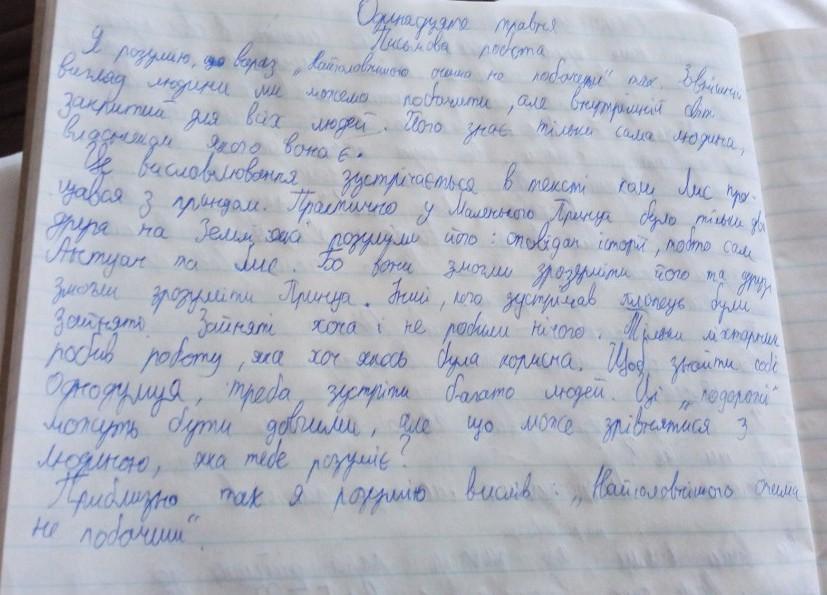 твір "найважливіше не побачиш очима" або "Найскладніший політ - це політ над собою" за твором маленький принц (тільки не з інтернету!! бажано більше чим на 1 сторінку!! якщо не можете допомогти, не пишіть, будь ласка!!)