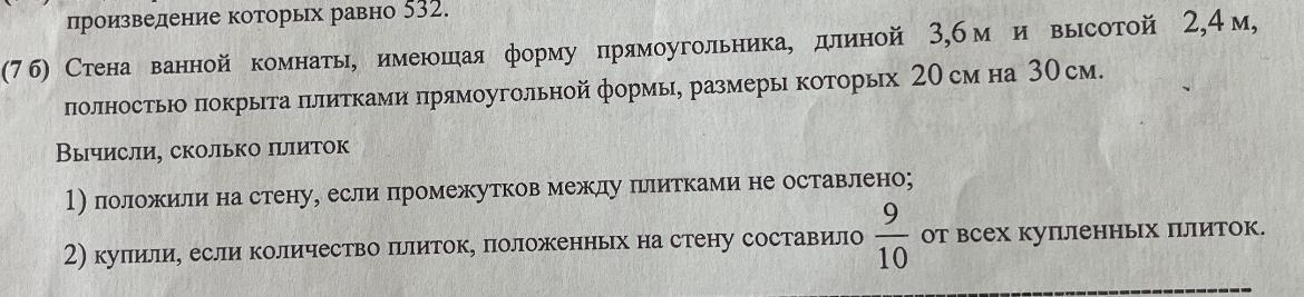 2) Найдём кол-во купленных плиток, если положенных составляет от всех купленных