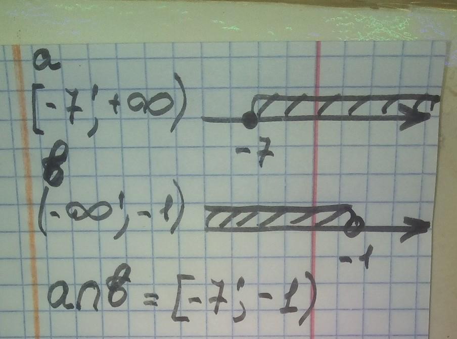 Зобразити і в писати інтервал який є перетином двох інтервалів [-7+бесконечность) і (- бесконечность;-1)