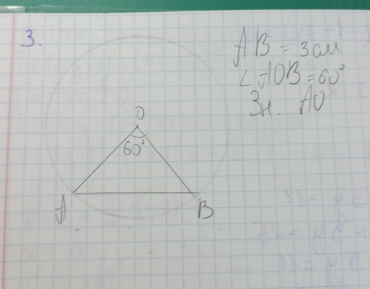 отже, виходить, що трикутник рівносторонній. АВ=ОВ=АО, 3 см
