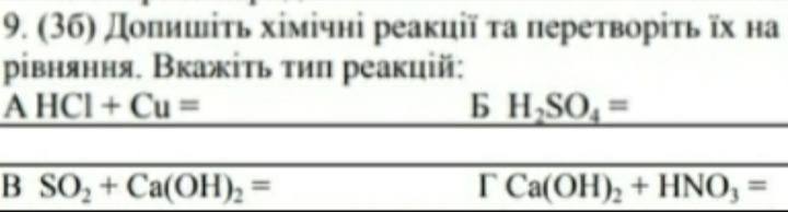 A: 2HCl + Cu = CuCl2 + H2 - заміщення
