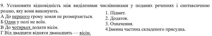 СРОЧНО! ПОЖАЛУЙСТА. Установити відповідність між виділеними числівниками у поданих реченнях і синтаксичною