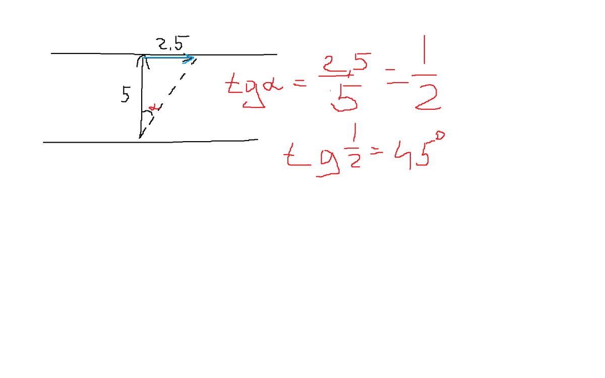 Скорость лодки в стоячей воде v'=5 ,а скорость течения v0=2,5 м/с. Под каким углом к линии перпендикулярной берегу,следует направить лодку,чтобы она пересекла реку по кратчайшему пути?