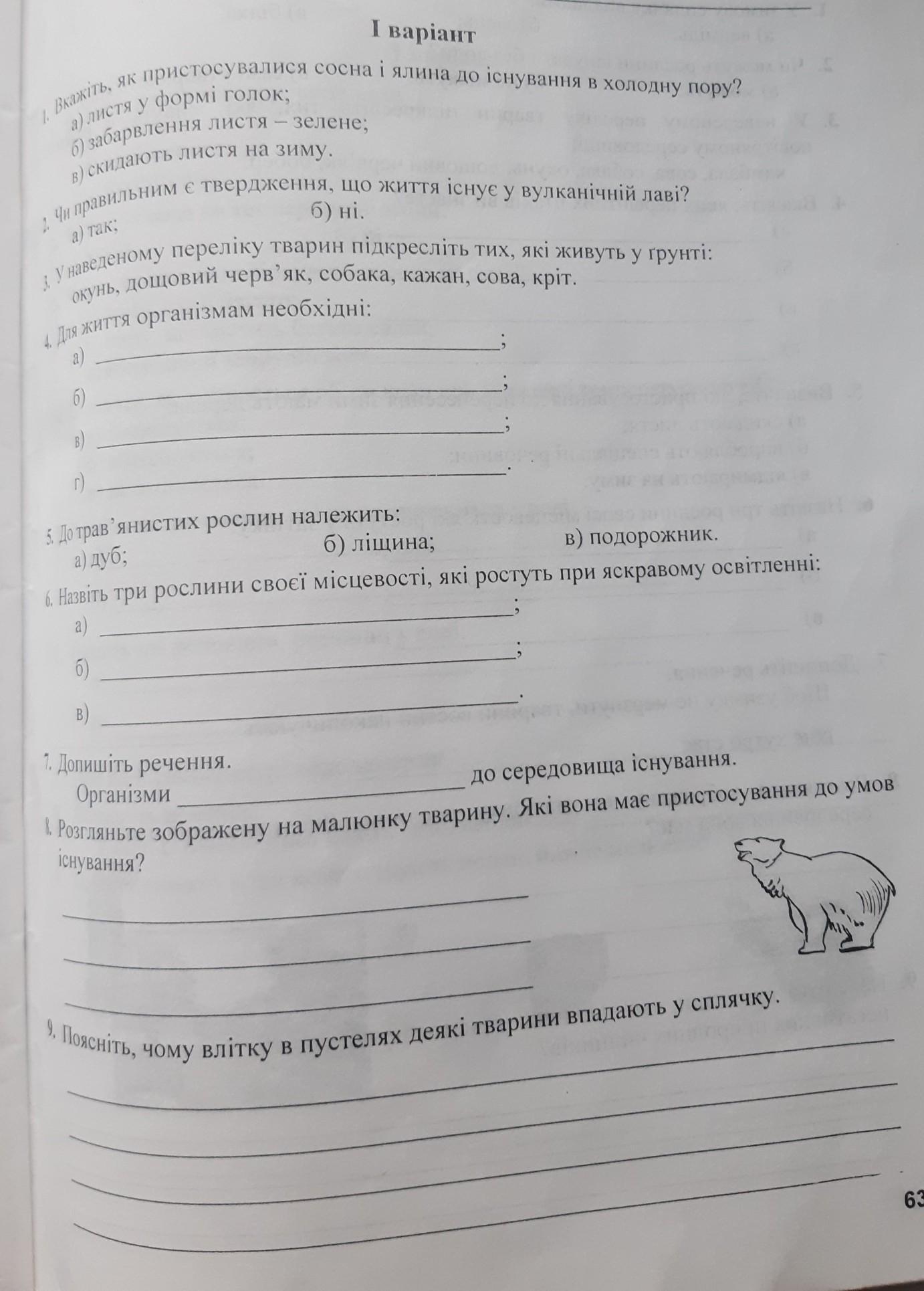 1)а 2)б 3)червяк,кріт 4)кисень,світло,вода,їжа,5)в 6)кульбаба,лопух,конюшина7)пристосовані.8)шерсть,позурі,гострі,зуби.9)тому що у літку вони зариваються упісок ховаючись від високих температур