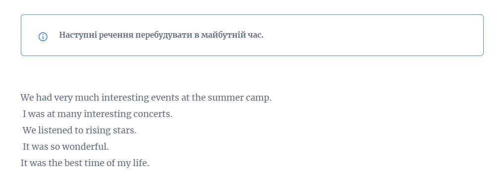 1)We will have very much intresting events at the summer 2)I will be at many interesting concerts 3) We will listen to rising stars 4)It will be wonderful 5) It will be the best time of my life. Удачки тебе)