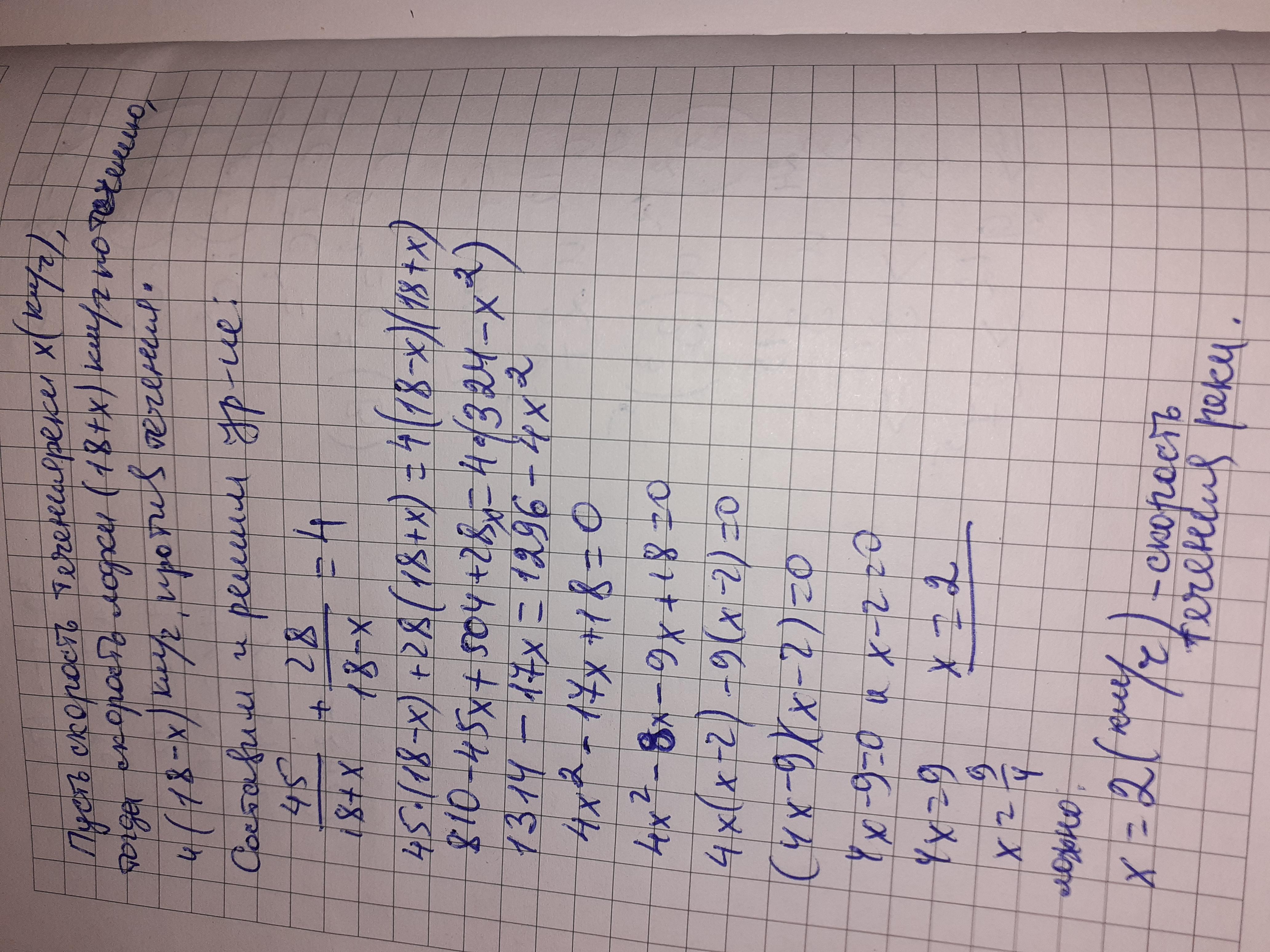 Катер проплив 45 км за течією річки і 28 км проти течії, витративши на весь шлях 4 год. Знайти швидкість течії, якщо власна швидкість катера становить 18KM /год