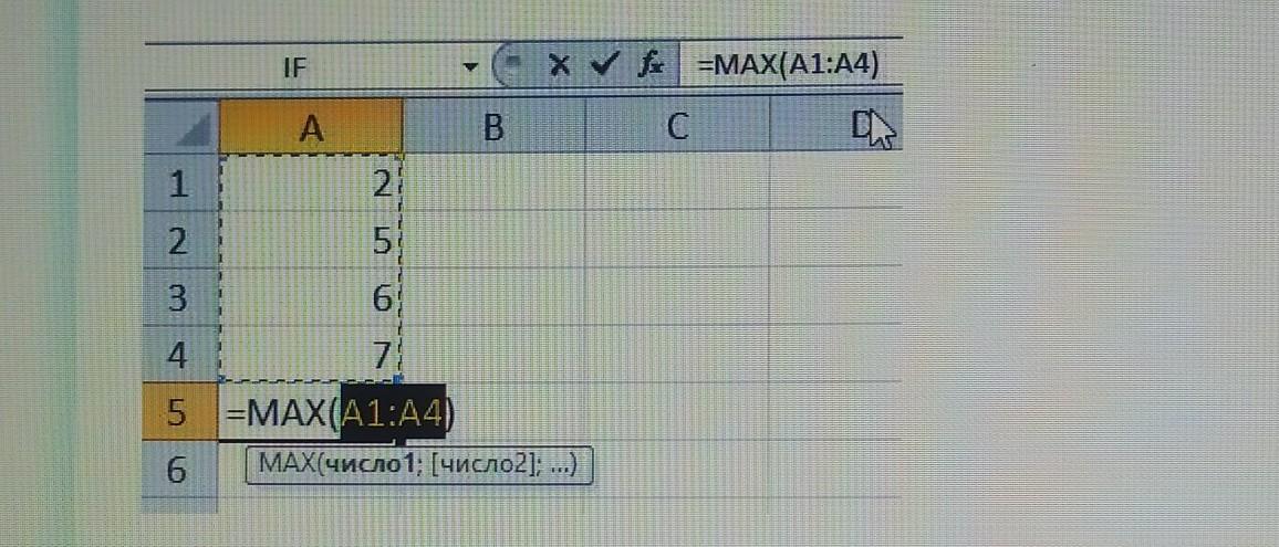 В клеточке А5 должно быть самое большое (max) число из представленных выше (А 1-4)