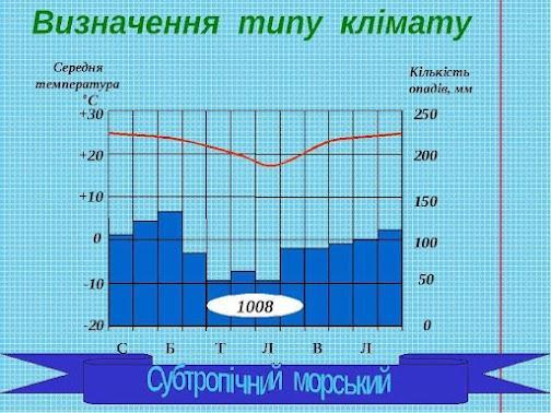 Визначте за даною кліматодіаграмою температуру повітря і кількість опадів у березні.