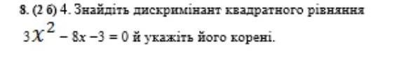 D= -8^2 - 4 * 3* (-3)= 64+ 36= 100