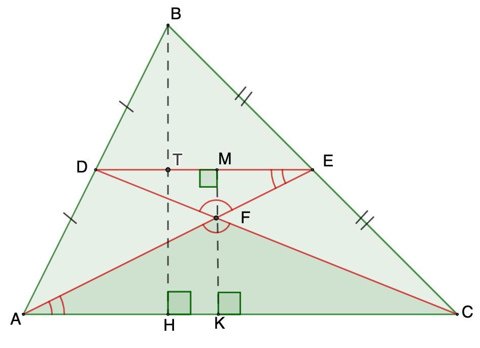 ⇒ ∠DЕF = ∠FАC (накрест лежащие при DE || AC и секущей АЕ)