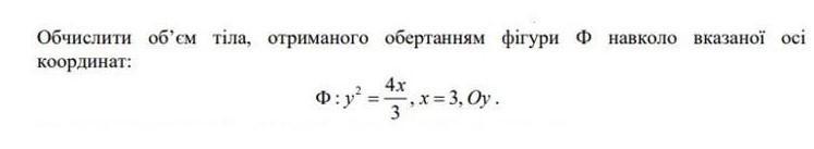 Обчислити об’єм тіла, отриманого обертанням фігури Ф навколо вказаної осі координат:
