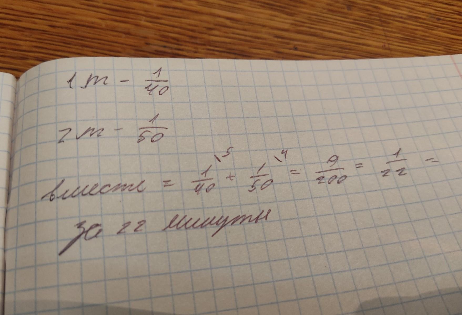 Первая труба может наполнить бассейн за 40мин а вторая за 50мин. за сколько минут наберется бассейн если использовать две трубы