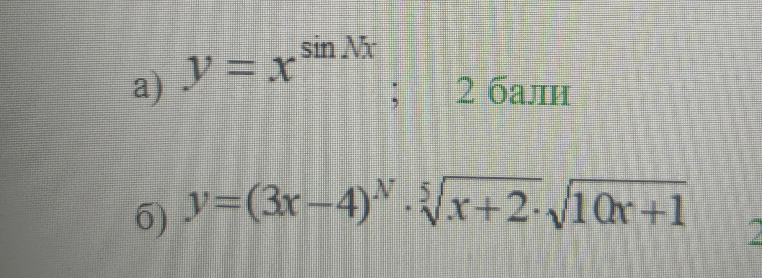 Обчислити похідні використовуючи логарифмічне диференціювання. Допоможіть, будь ласка .