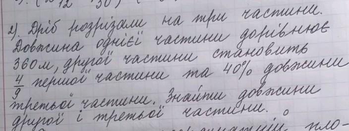 1) 360 * 4/9 = 40 * 4/1 = 160/1 = 160 (м) - равна вторая часть