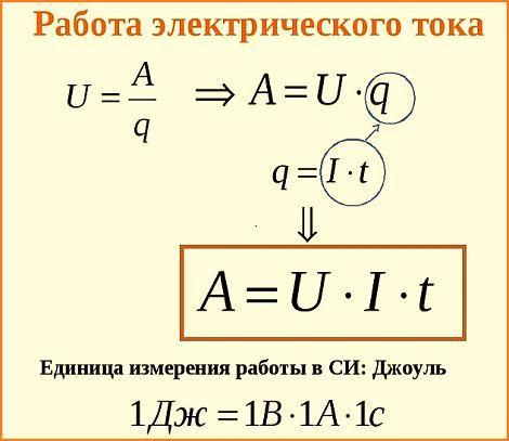 где U-напряжение, t- время, в течение которого совершалась работа, I- сила тока