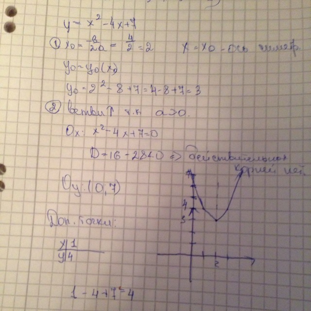 y=x^2-4x+7=x^2-2*2*x+2^2+3=(x-2)^2+3