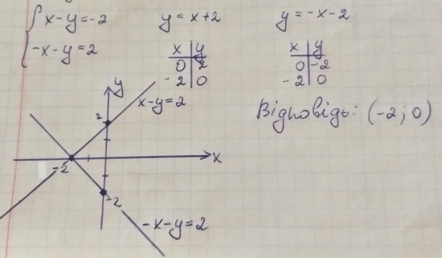 Розв'яжіть систему рівнянь графічним способом:Х-у=-2; -х-у=2