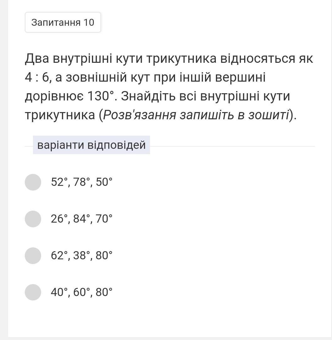 Сума кутів трикутника не суміжних з зовнішнім дорівнює цьому зовнішньому куту.