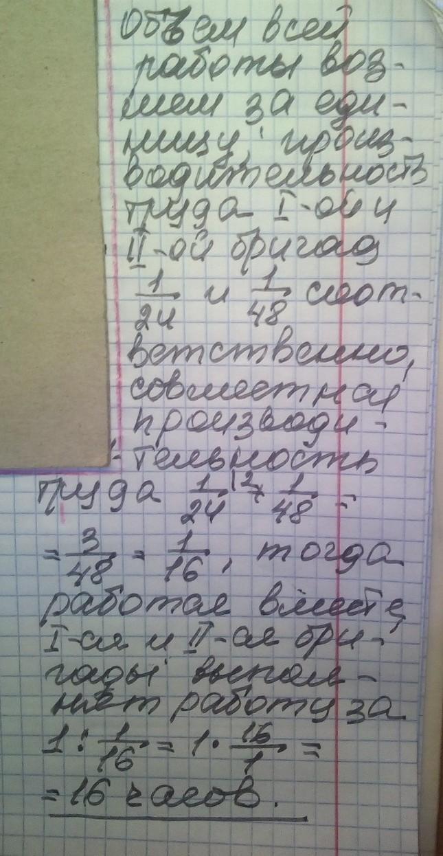 3) 1/24+1/48= 3/48 = 1/16 часть работы будет выполнена 2-мя бригадами за 1 час