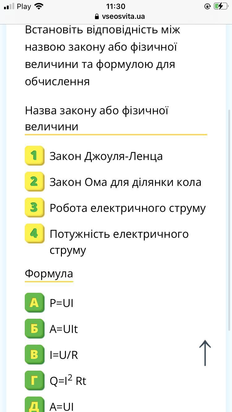 Встановіть відповідність між назвою закону або фізичної величини та формулою для обчислення