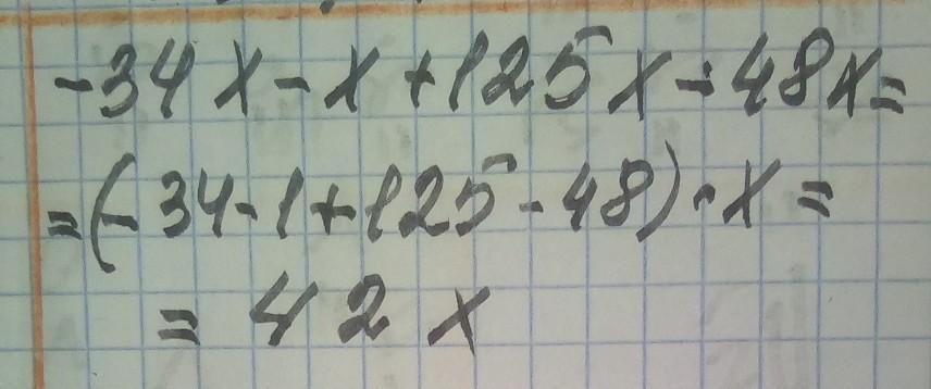 -34х - х + 125х - 48х = (-34 - 1 + 125 - 48) * х =