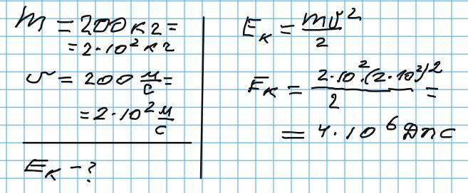 «Сільвер буллет» – один із найменших реактивних літаків. Маючи масу 200 кг, він розвиває швидкість руху близько 200 м/с. Якою є кінетична енергія літака за цієї швидкості?