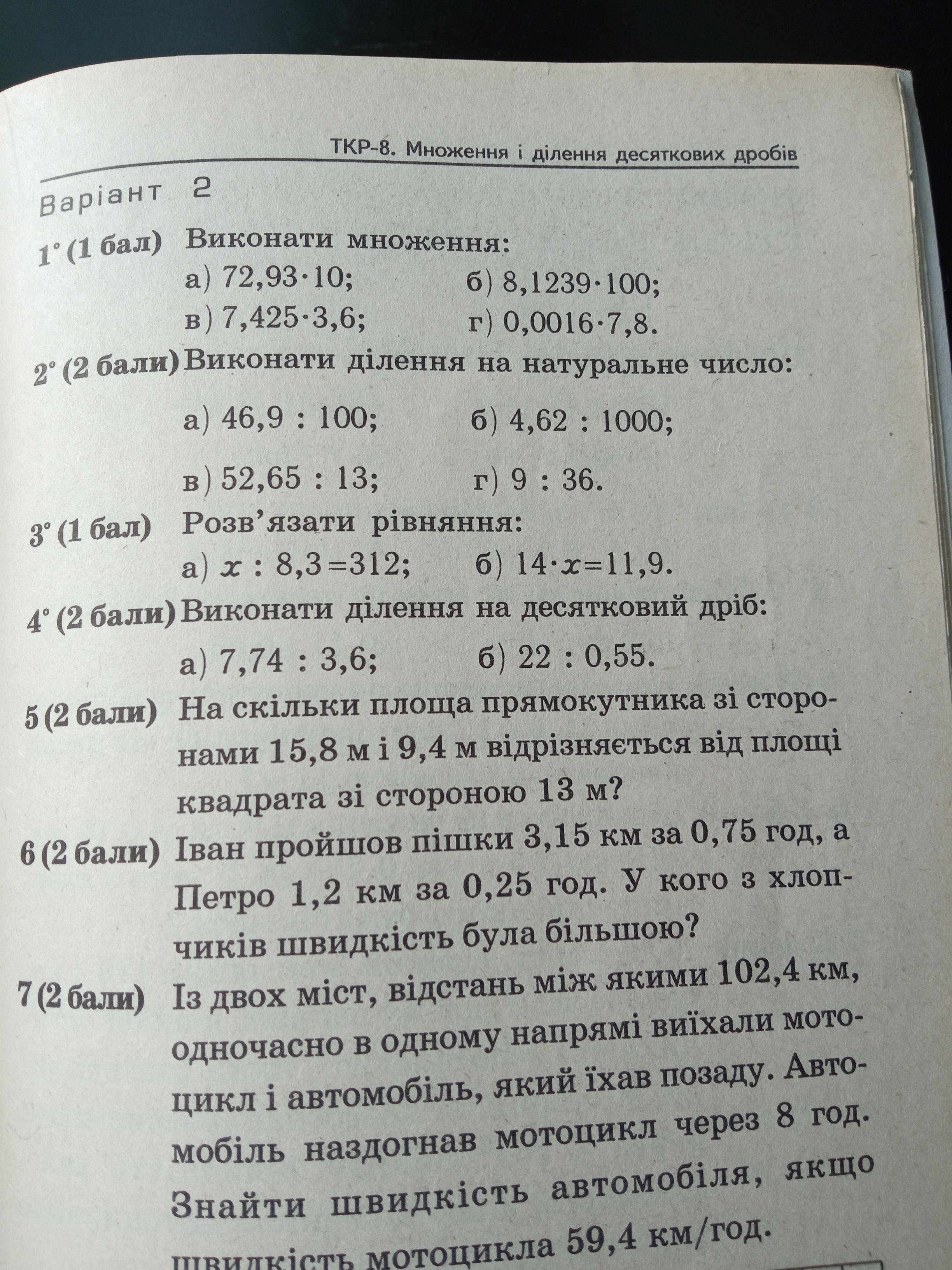 2) 1,2 : 0,25 = 4,8 (км/год) - швидкість Петра