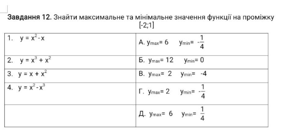 Установить соответствие между функциями и их наибольшим/наименьшим значениями на промежутке [-2;1]: