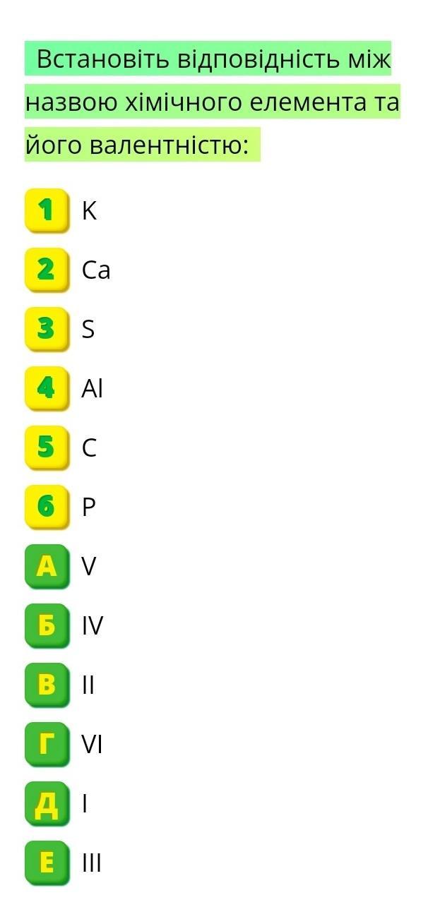 ДАЮ БАГАТО БАЛІВ! Встановіть відповідність між назвою хімічного елемента та його валентністю: