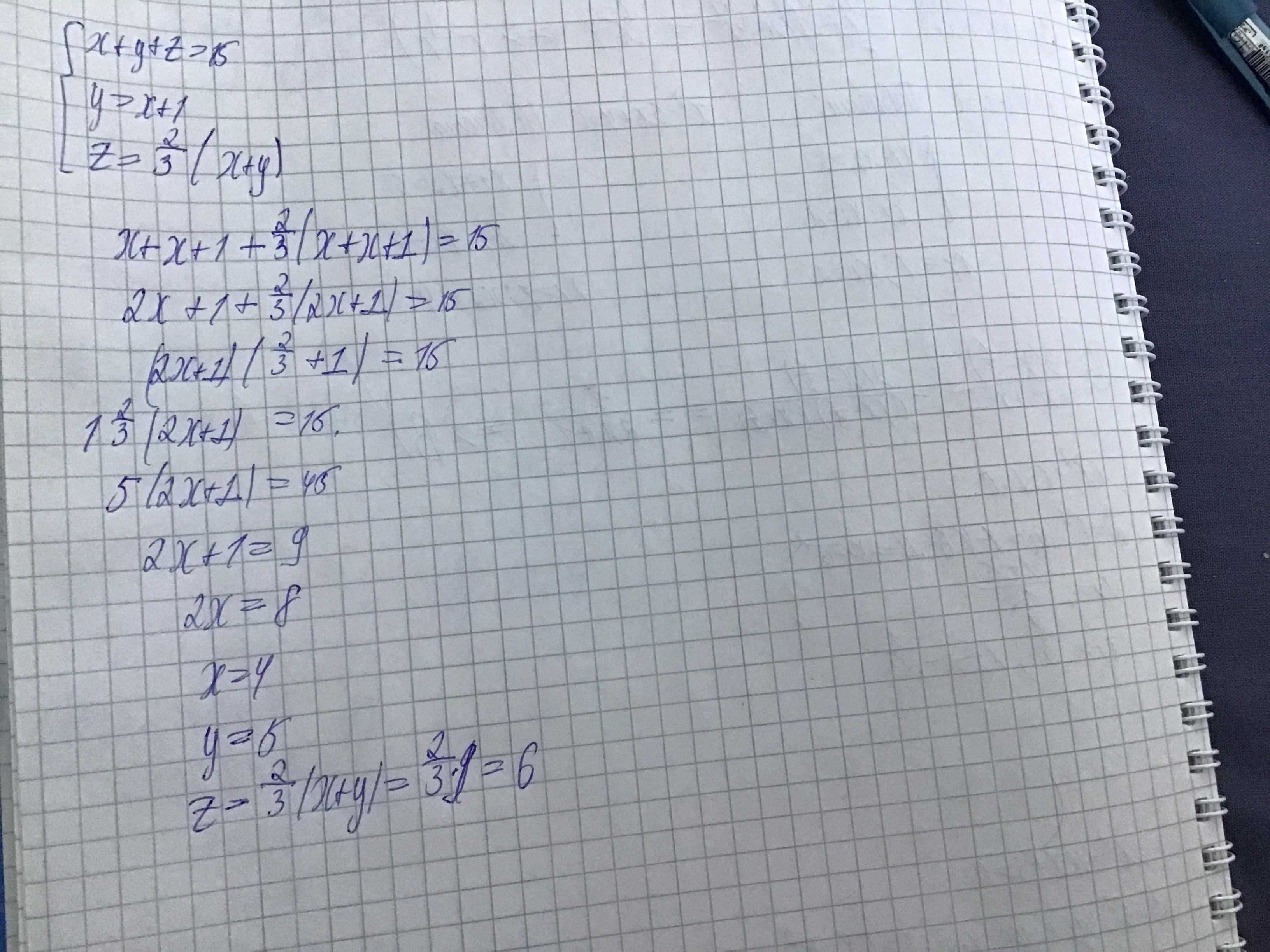 За три дні продали 15 тонн картоплі. В перший день продали на 1 тону меньше, між другого, а третього дня -2/3 того, що продали в перший і другий разом. Скільки тонн картоплі продали кожного дня?