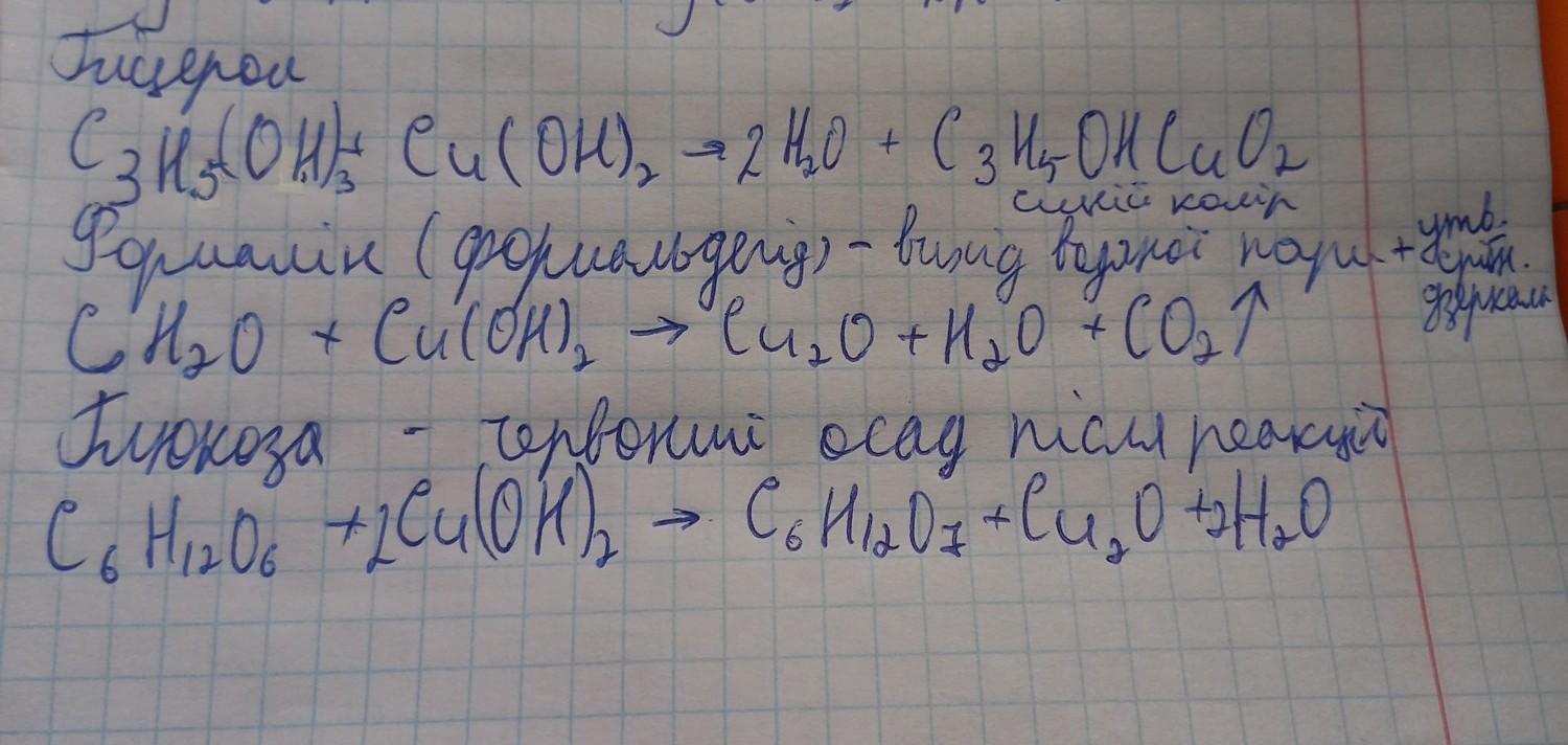 В трех стаканах без подписей находятся вещества: глицерол, формалин, глюкоза. Определите с помощью характерных реакций, в которой пробирке содержится каждое вещество