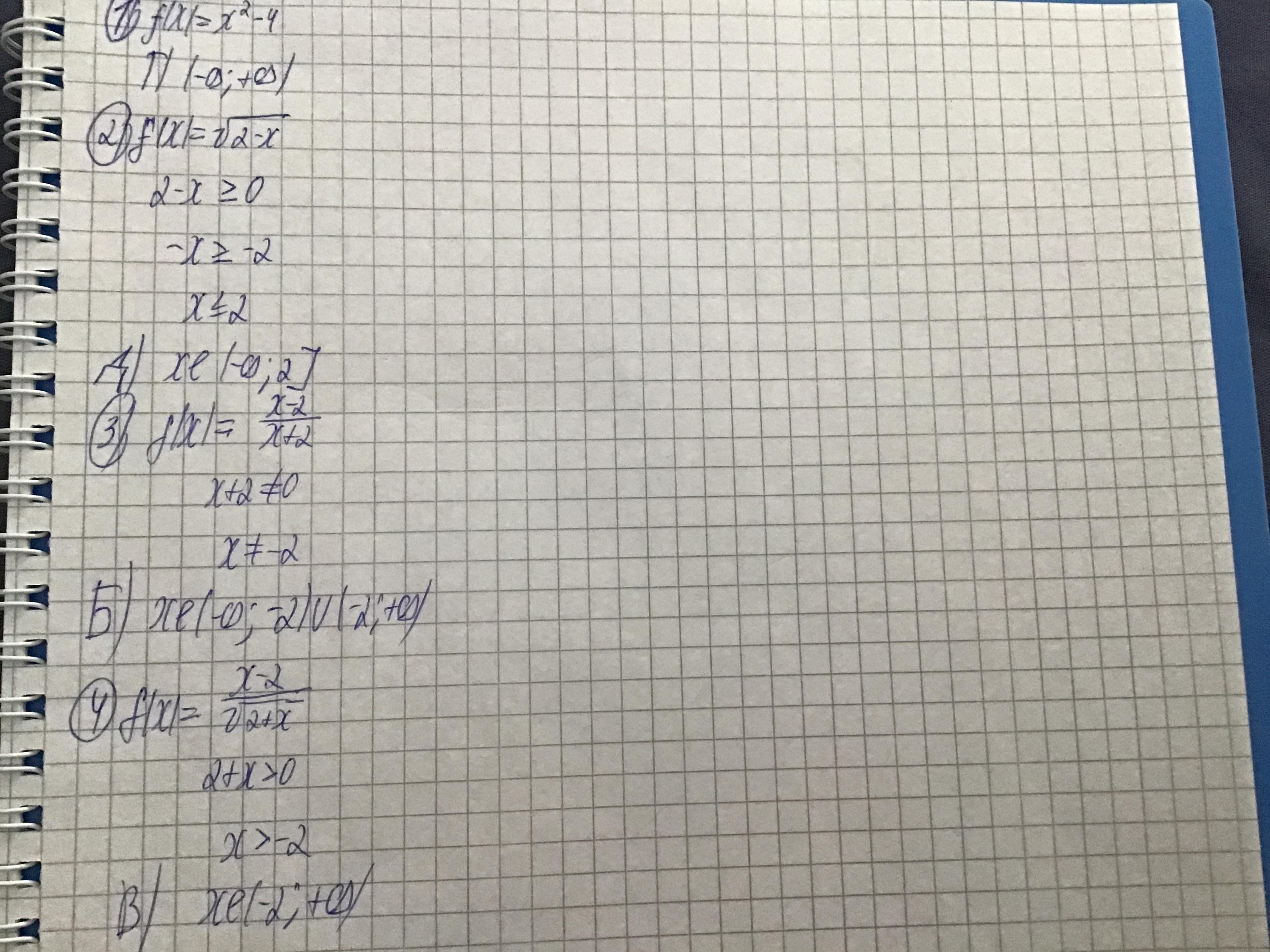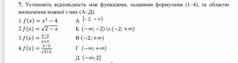 Установіть відповідність між функціями, заданими формулами (1–4), та областю