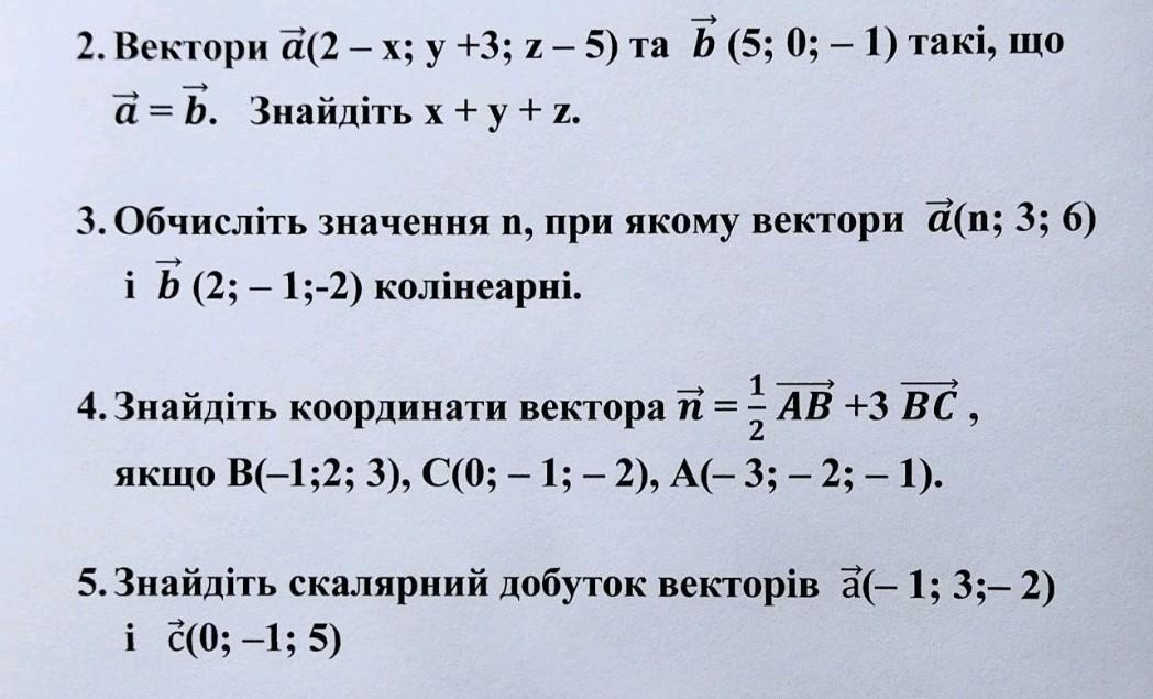 2. оскільки a=b, то 2-х=5, у+3=0, z-5=-1