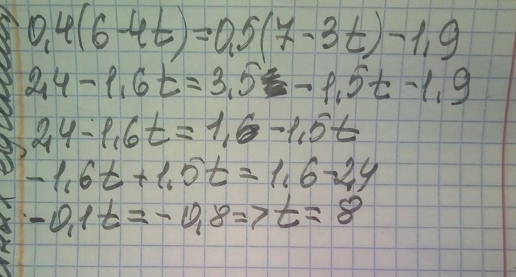 2.4 - 1.6t = 3.5 - 1.5t - 1.9