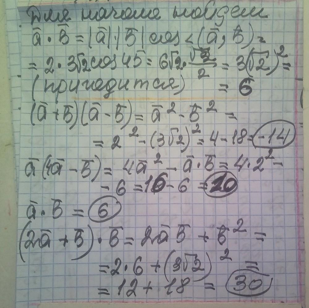 |a⃗ |=2;|b⃗ |=32–√;<(a⃗ ;b⃗ )=45∘.