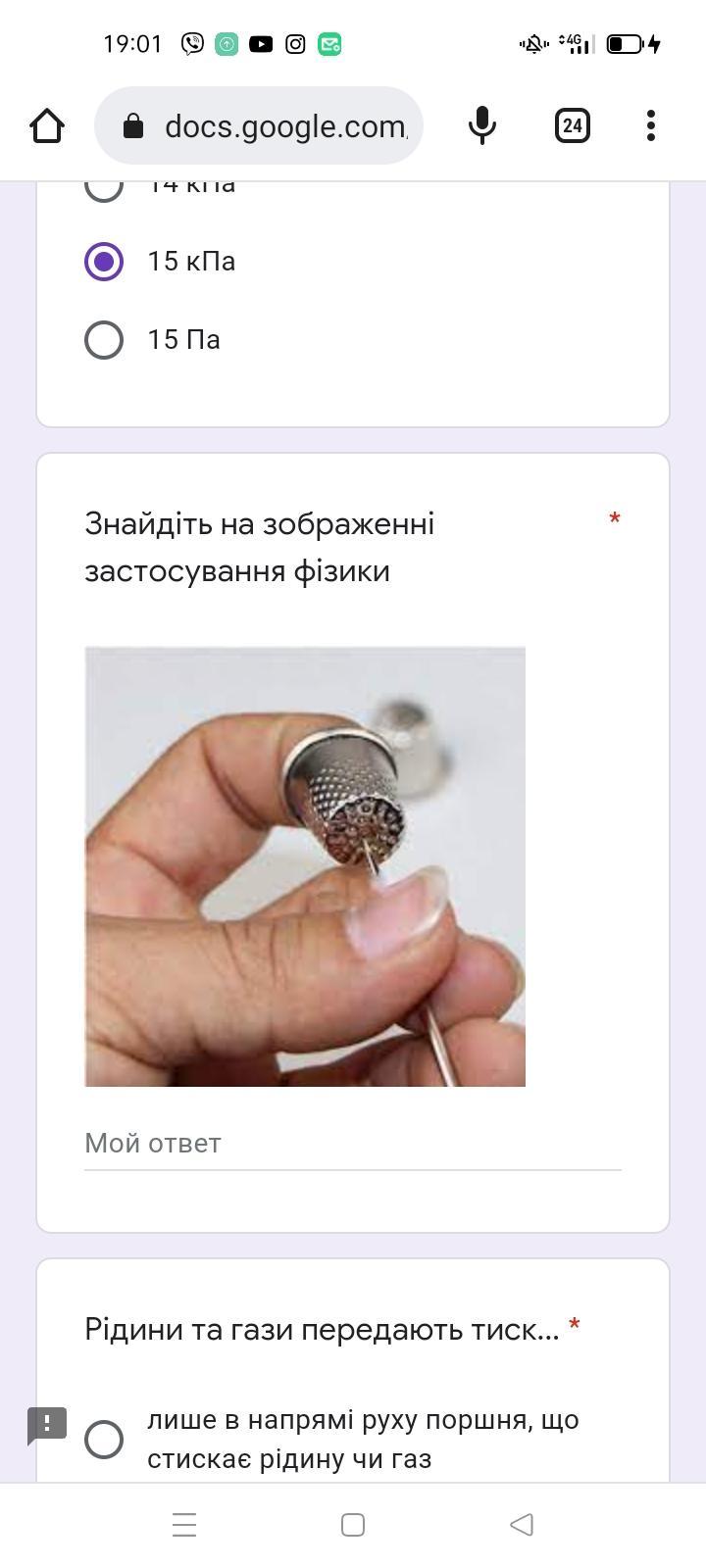 1) Острие иголки имеет очень маленькую площадь. Мы давим пальцем на донышко наперстка с небольшой силой. Но эта сила передается иголке и из-за маленькой площади острия создает громадное давление.