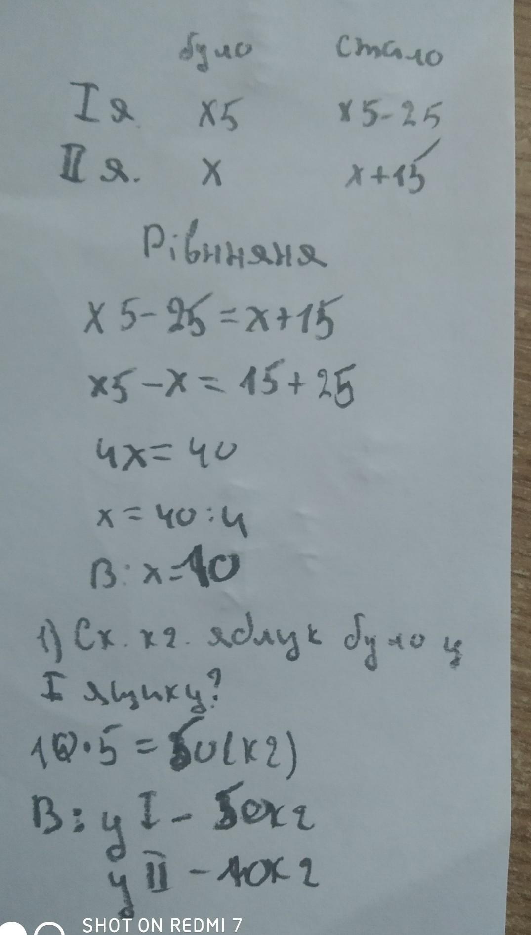 У першому ящику, було в 5 разів мандаринів, чи в другому. Коли з першого ящика взяли 25 кг мандаринів, а в другий поклали ще 15 кг, то в обох ящиках мандаринів стало порівну. Скільки кілограмів мандаринів було в кожному в ящику спочатку?