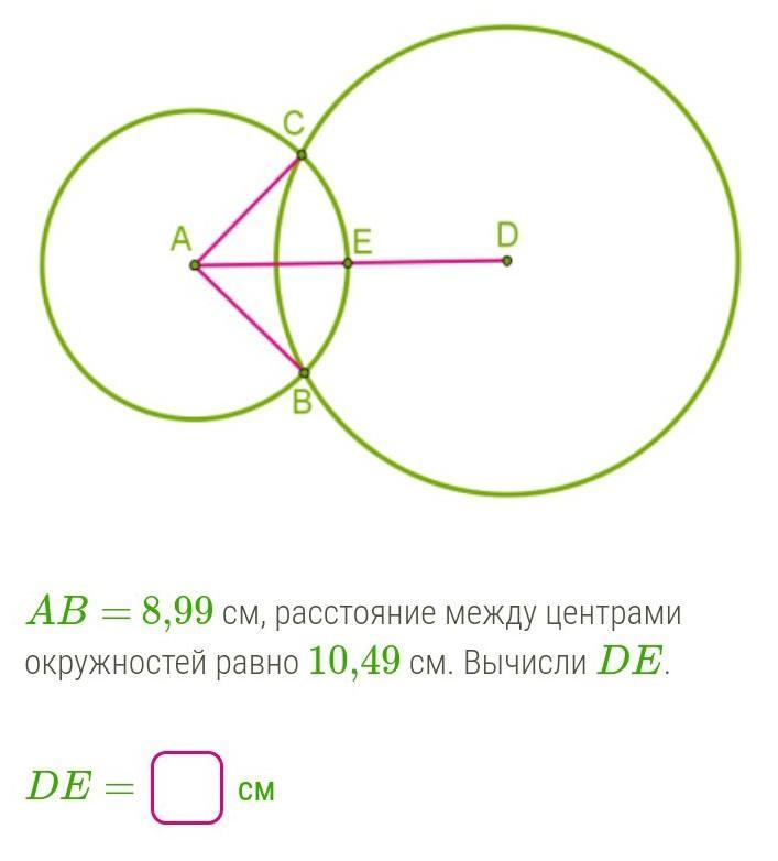 DE = AD - AE = 10,49см - 8,99см = 1,5см